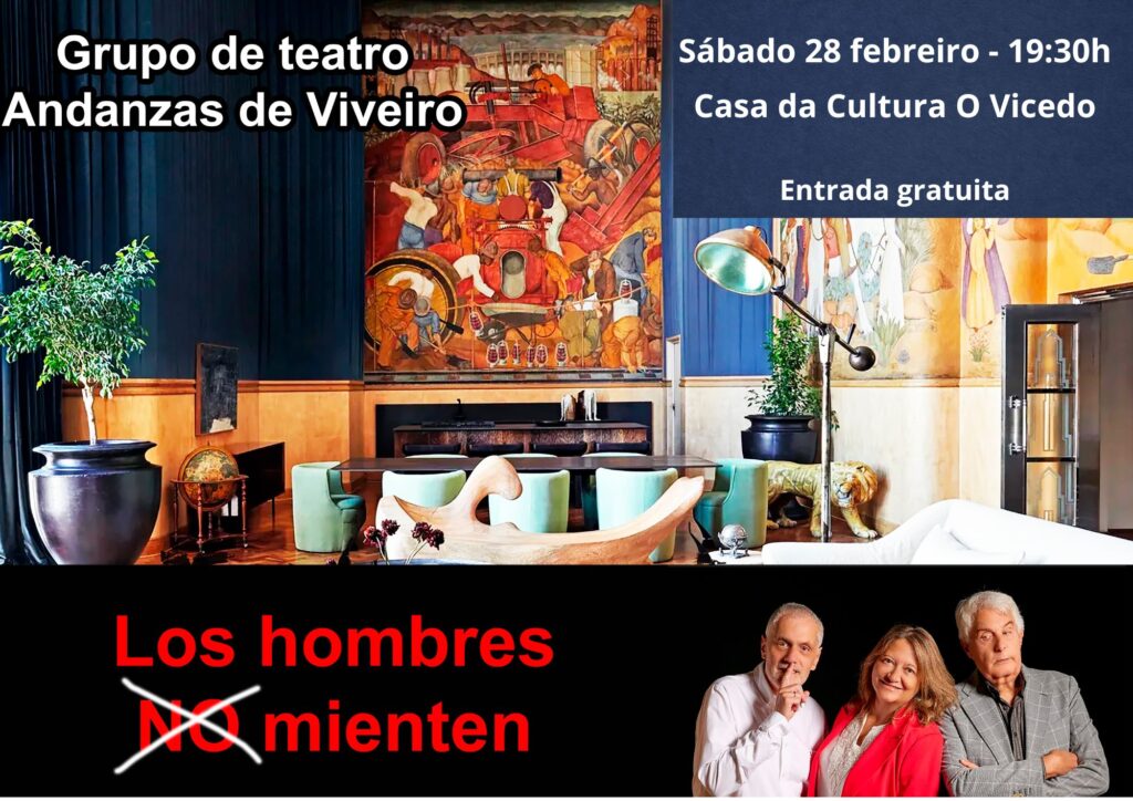 O grupo de teatro Andanzas, de Viveiro, presenta a obra Los hombres no mienten o sábado 28 de febreiro ás 19:30h na Casa da Cultura do Vicedo